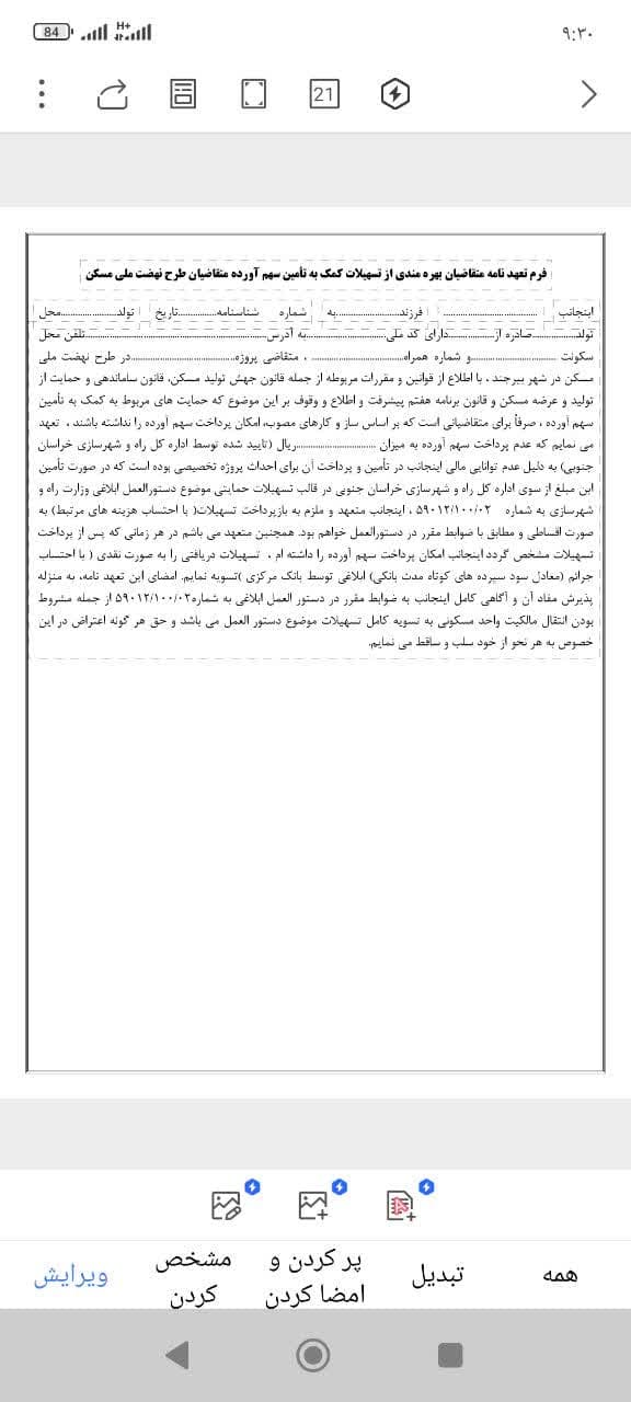 فرم تعهدنامه نهضت ملی مسکن دهک 1 تا 4 |